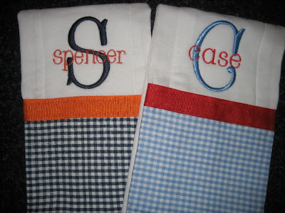 Here are some of the burp cloths and a kitchen towel I have made lately. I love the damask print on the kitchen towel!